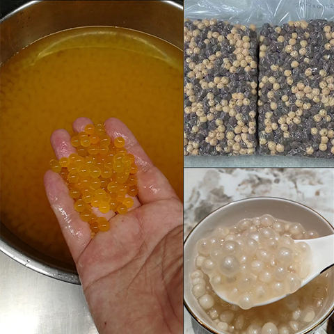 该设备生产的寒天晶球 / 爆爆珠成品,适用于常温、低温、冷饮类产品,可搭配甜点、甜饮料、果汁、奶茶等食用。