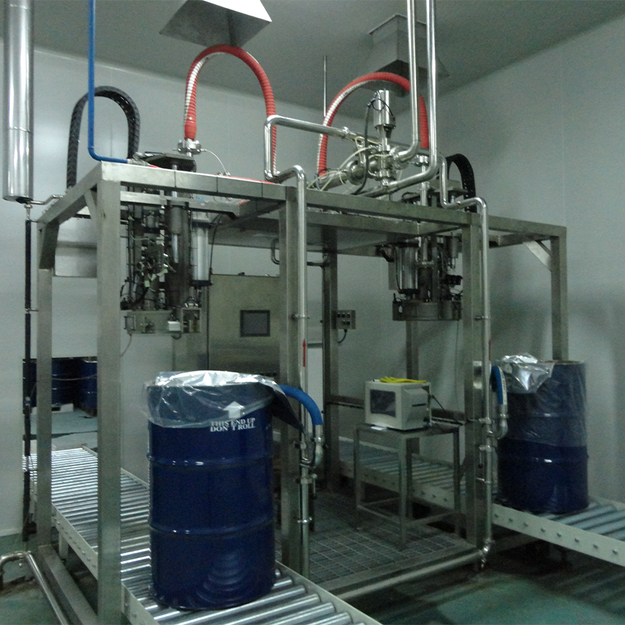 将待灌装的物料(如果蔬汁、饮料、原浆等)接入设备,通过德国 E+H 质量流量计或电子秤(默认配置)确认物料供应稳定;