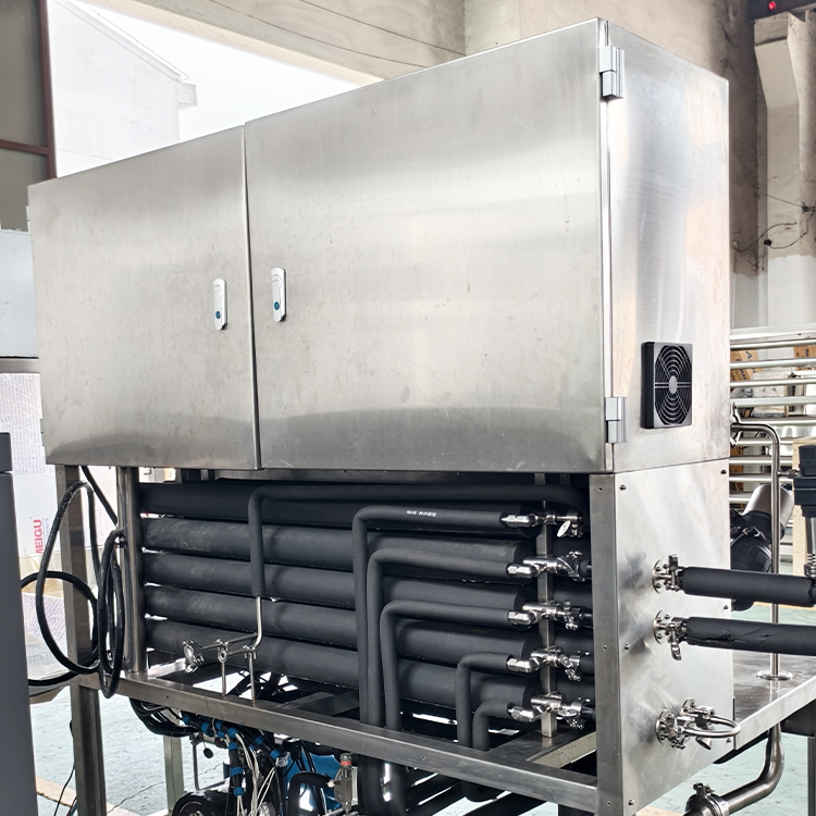 观察 PLC 面板显示的实时温度,确保杀菌温度稳定在设定值(波动≤±0.3℃);每 5 分钟记录一次温度、流量数据,若出现温度偏离,通过电磁阀调整蒸汽注入量。