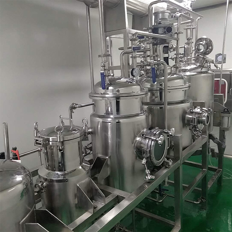 提取液分离:开启罐内内置滤网,通过加压过滤将药渣与提取液分离,药渣排出,提取液暂存罐内;